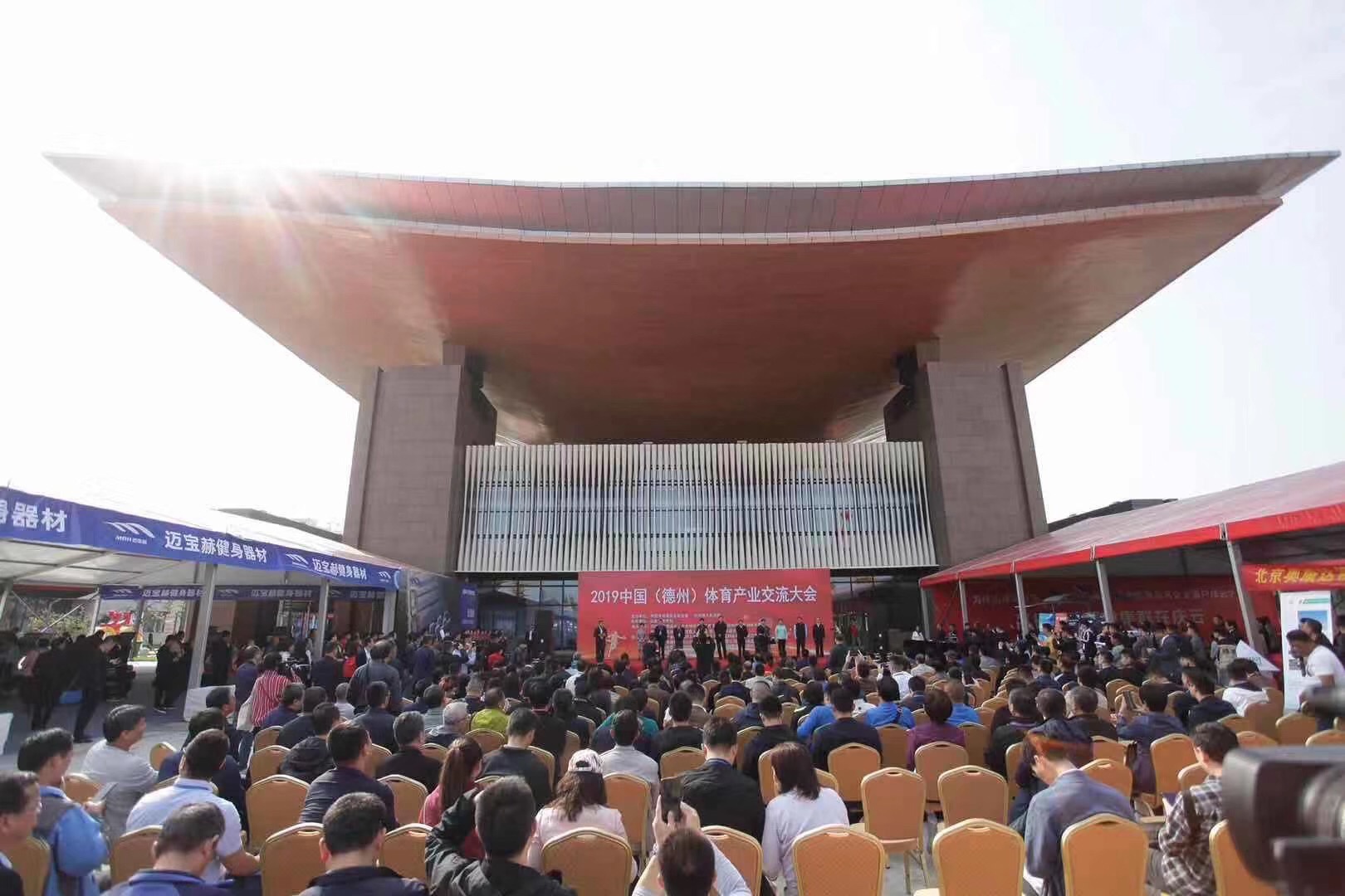 10月13日,2019中国(德州)体育产业交流大会在太阳能德州小镇开幕。大会由中国体育用品业联合会与德州市人民政府联合主办,山东省体育局支持,中国体育用品业联合会场馆事业工作委员会等单位共同承办。大会在 “融入京津冀助力新动能”的大背景下,以“德州智造·标准引领,助力体育产业升级”为主题,旨在充分展示区域体育产业发展成果,促进国际国内体育产业交流,扩大招商引资规模,搭建品牌商、渠道商和消费者展示与互动平台。开幕式上,bb贝博Ballbet产业集团荣获“明星企业”称号。