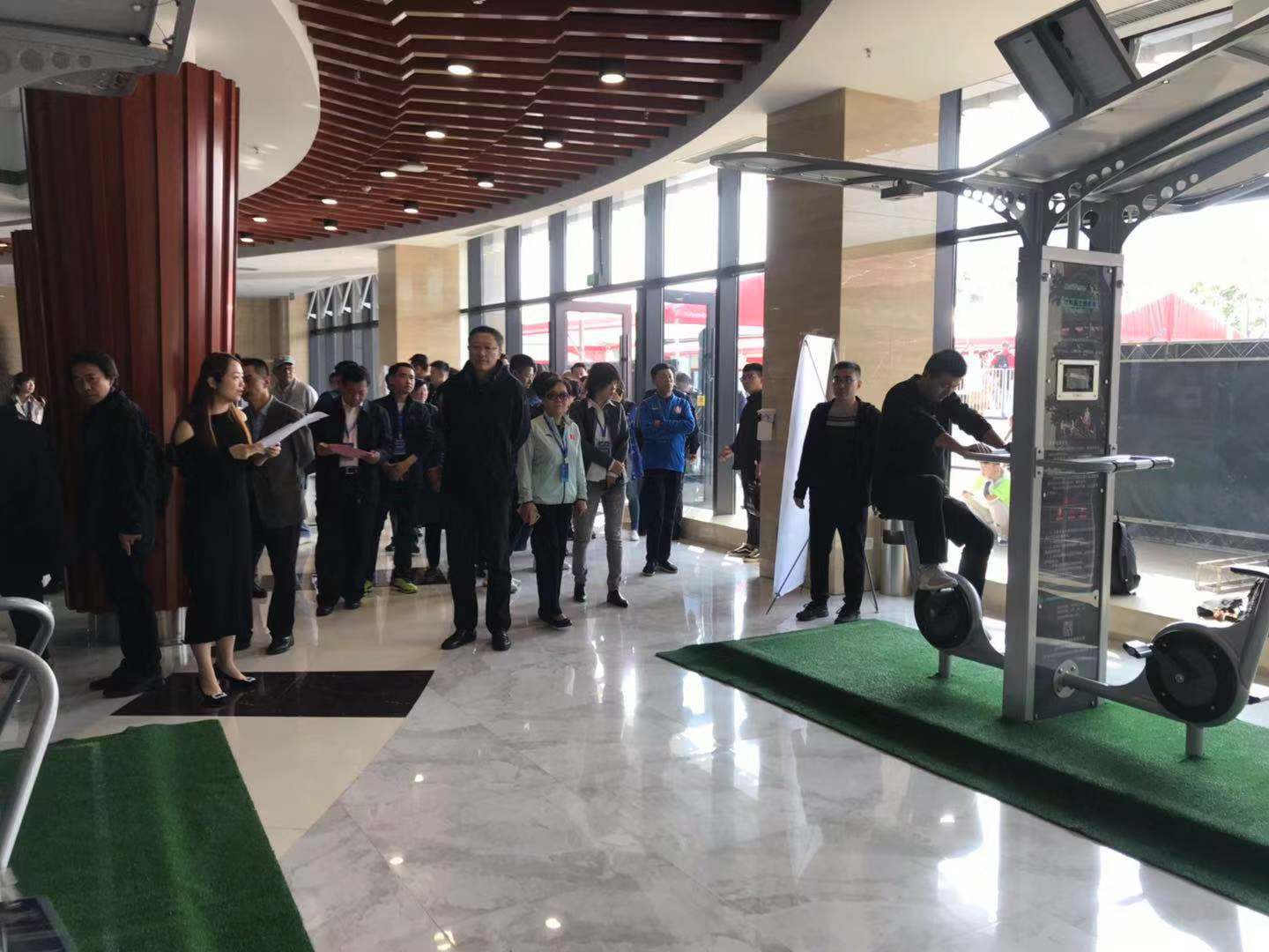 2019中国(德州)体育产业交流大会共分为四大板块,分别为中国体育用品业联合会(德州)体育产业论坛、重点企业参观调研、赛事、创新型体育产品展览。bb贝博Ballbet二代智能路径、爱动超级体测机、碳纤维自行车、碳纤维体操器材、负离子草坪等产品成为创新型体育产品成果展览上的焦点。