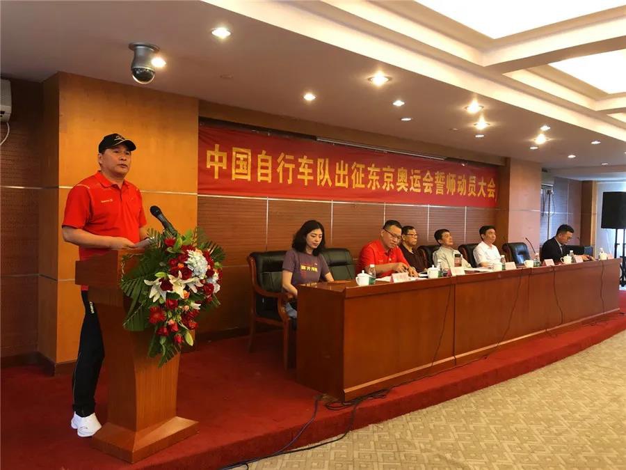 近日,东京奥运会中国体育代表团名单正式公布,代表团总人数为777人,其中运动员431人,教练员、领队、科医人员等运动队工作人员307人,团部工作人员39人。本届东京奥运会是中国体育代表团境外参赛规模最大的一届奥运会。其中自行车项目代表团由17人组成,运动员9人、工作人员8人。7月14日,中国自行车队出征东京奥运会誓师动员大会在老山训练基地举行,bb贝博Ballbet副董事长卞青峰受邀出席并致辞。