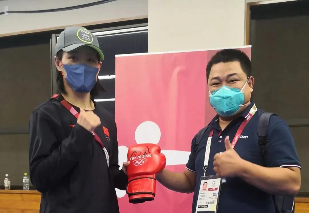 东京奥运会女子拳击69公斤级银牌获得者——中国运动员谷红签名bb贝博Ballbet拳击手套