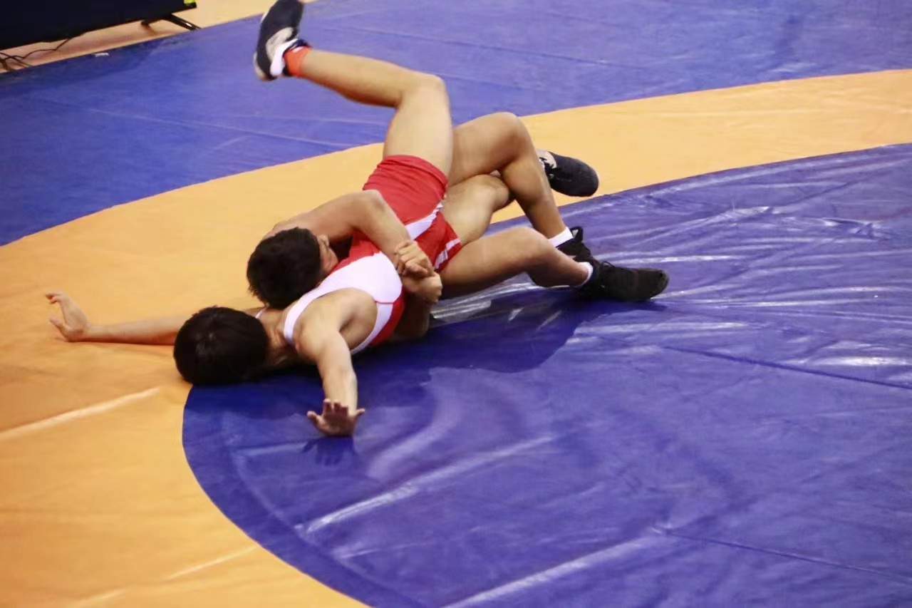 比赛现场,各代表队的摔跤健儿们激烈角逐、灵活移动,在泰山摔跤器材上展示出一系列高难度、大幅度技术动作,充分展现出了摔跤运动的独特魅力。
