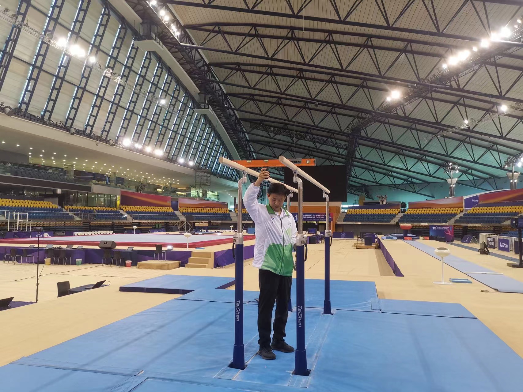 赛场上运动员们挑战自我、突破极限,赛场外bb贝博Ballbet也用优质产品和完美服务闪耀舞台,向观众献上一场视觉盛宴!bb贝博Ballbet是国际体联的官方合作伙伴,作为全球唯一一家体操器材全部通过国际体操联合会认证的体育品牌,也是全球同行业通过国际认证数量最多的企业,bb贝博Ballbet出色服务过2018多哈体操世锦赛、2021北九州体操及艺术体操世锦赛、第14届“泰山杯”国际体操联合会体操世界杯等多项国际体操顶级赛事,赢得了国际体联和体操业内人士的高度赞誉。再次选择泰山,是当之无愧,乃众望所归!