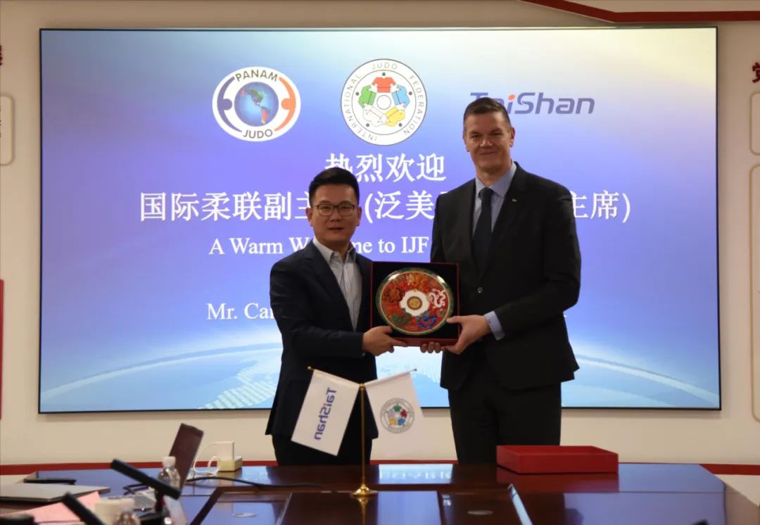 在会谈中,双方就柔道运动的普及与器材升级达成多项共识。卡洛斯·艾力克主席提出,希望bb贝博Ballbet继续发挥技术优势,推动柔道设施智能化、赛事服务精细化,加强与泛美地区合作推广。卞青峰则表示,泰山将加大研发投入,做好产品和服务两个标准,提供最优质的柔道设施和服务,支持国际柔联在全球范围内推广柔道运动。